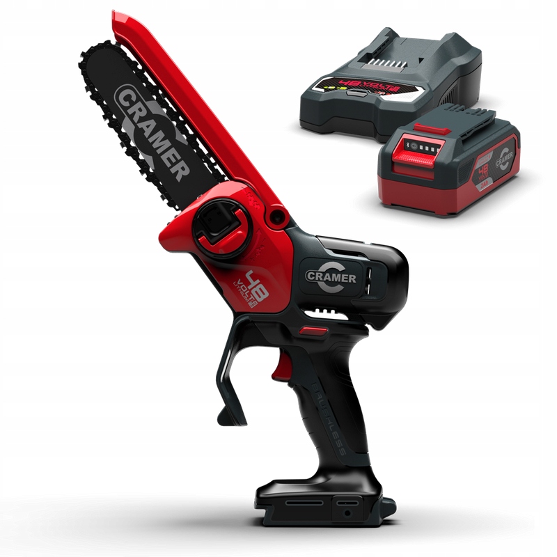 Cramer 48MCS to wydajna pilarka akumulatorowa 48V, która została zaprojektowana do użytku przy pracach ogrodowych. Oferuje wyjątkową trwałość dzięki solidnej konstrukcji, a dzięki dużej mocy (400W) pozwala na wykonanie każdego zadania szybko, wydajnie i bezpiecznie, co zostanie docenione nawet przez wymagającego użytkownika. Seria Cramer 48V konkuruje z tradycyjnymi silnikami spalinowymi, ale zapewnia znacznie niższe koszty eksploatacji i większą wygodę, co czyni ją idealnym wyborem. Poza korzyściami w zakresie kosztów i wydajności, seria Cramer 48V zapewnia bezpieczeństwo użytkownika, niski poziom wibracji, niski poziom hałasu oraz zerową emisję szkodliwych spalin. Dodatkowo 48MCS ma zintegrowaną osłonę łańcucha i bezpieczne uruchamianie za pomocą dwóch przycisków.