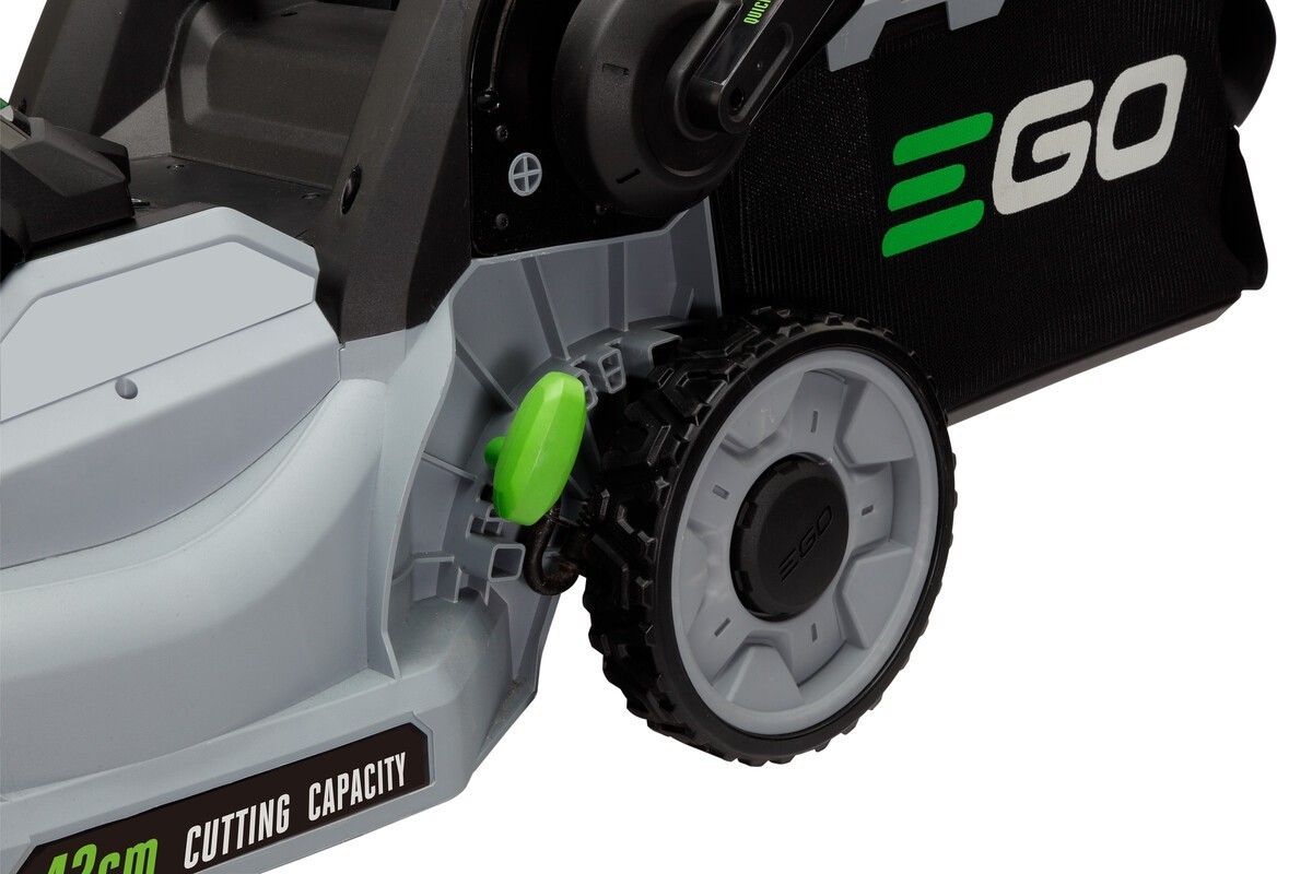 Kosiarka LM1700E-SP została stworzona z myślą o użytkownikach posiadających już sprzęt marki EGO Power+. W zestawie z baterią 4.0Ah i ładowarką CH2100E,jednakże umożliwia korzystanie z baterii o pojemności od 2.5 do 12 Ah 56V Arc Lithium. Dla tych, którzy rozpoczynają swoją przygodę z serią EGO, model LM1700E-SP z baterią 4Ah oraz standardową ładowarką jest idealnym rozwiązaniem, pozwalając na skoszenie do 480 m2 na jednym ładowaniu.