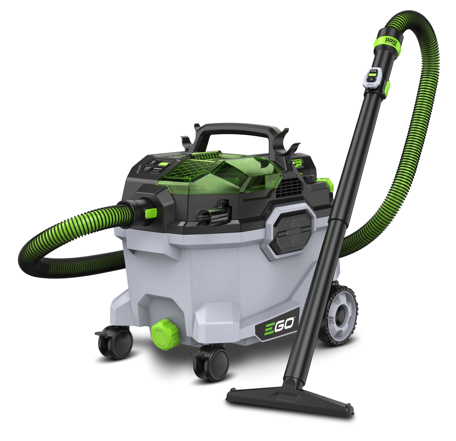 EGO POWER+ WDV0900E wyposażony jest w pojemny zbiornik o pojemności 34 litrów, co umożliwia długotrwałą pracę bez konieczności częstego opróżniania. Wbudowany schowek na akcesoria zapewnia wygodne przechowywanie wszystkich niezbędnych końcówek, co czyni ten odkurzacz kompaktowym i łatwym w przechowywaniu.