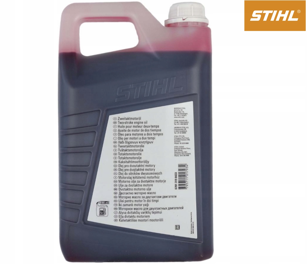 Olej do silników dwusuwowych na bazie olejów mineralnych. Bardzo dobre właściwości smarne i duża czystość silnika. Klasa mocy: JASO-FB. Proporcje mieszanki 1:50. Informacji na temat innych wielkości pojemników udzieli Państwu chętnie Autoryzowany Dealer STIHL