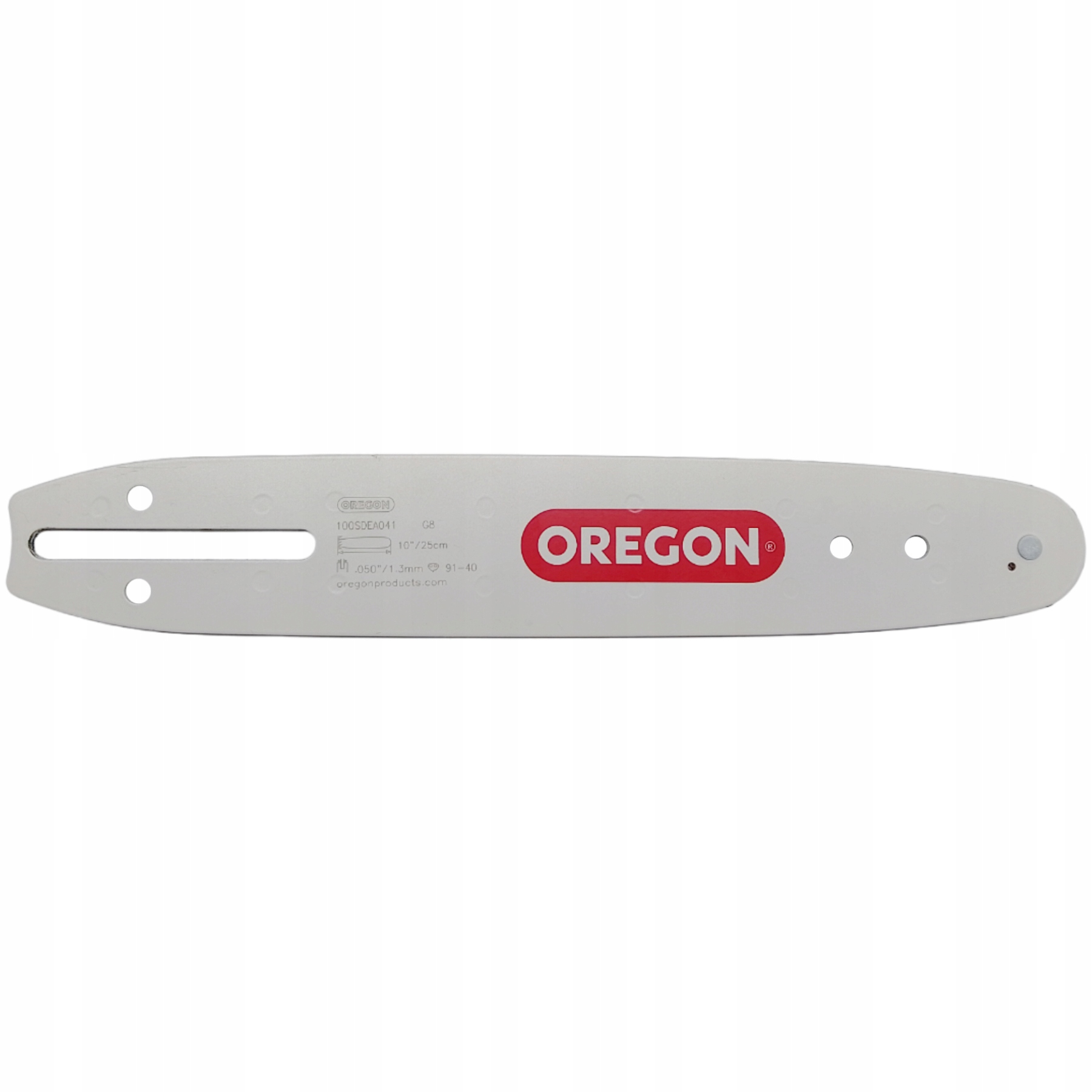 Prowadnica Oregon 100SDEA041 o długości 25 cm (10 cali) i szerokości rowka 1,3 mm to wysokiej jakości komponent przeznaczony do użycia z mniejszymi pilarkami łańcuchowymi. Jest to model z serii Single Rivet, który charakteryzuje się prostotą montażu i solidnością konstrukcji, zapewniając stabilność oraz efektywność cięcia.