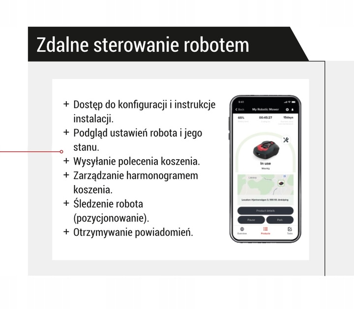 Za pośrednictwem standardu GSM 2G/4G bezprzewodowego połączenia smartfona i aplikacji Cramer Connect możesz w łatwy sposób monitorować stan robota oraz zarządzać harmonogramem koszenia.