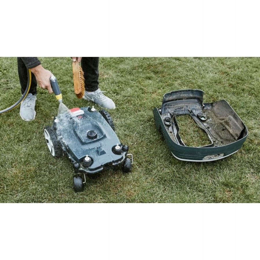 Dzięki wysokiej klasie ochrony przed wodą IPX5 robot koszący jest znakomicie chroniony przed warunkami atmosferycznymi. Ponadto należy zwrócić uwagę na fakt, że może być czyszczony wodą pod ciśnieniem przy użyciu węża ogrodowego. To wszystko dzięki łatwo zdejmowalnej pokrywie.